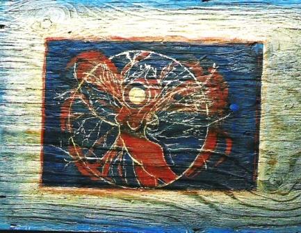 unframed, printed and painted with acrylic on weathered barn wood.